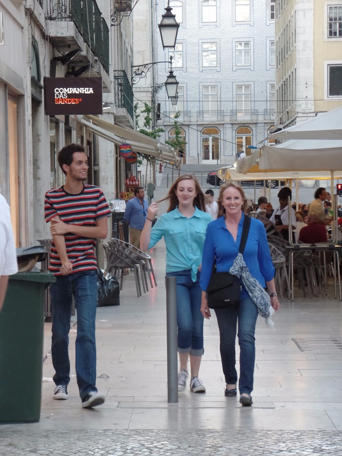 Today, we woke up a bit early to visit the flea market that our renter had suggested. After taking a taxi to a square packed with booths and second hand piles of who's its and what's its, we split up, my mom and I walking one way and my dad and Tony another. After a couple of hours of shopping, it got HOT. Like gross hot. So we decided to take a cab back to the main square. My mom and I both bought matching anklets, I found a pendant for one of my many empty chains back at home, my mom also got a little Lisbon painting, and my dad, for some reason, bought a leather computer....? After going back to the square, we each grabbed some walk away food, then came back to the apartment to relax. After hanging out for a bit, my mom and I decided to head to the H&M store along one of the popular shopping streets. After spending a bit of time looking around, I grabbed a couple of plain t-shirts and a very Portuguese looking top. Next, we looked around the street for a while and my dad and Tony joined us. We then headed to a somewhat exclusive looking event by Super Bock Beer that had various food booths. I say somewhat exclusive because it had actual bouncers at the entrance of the red-roped front and you had to buy tickets to get in. You see? Fancy. We soon realized that we had no interest in the food they were serving, so we sat down with our iced teas and beers at the riverside and watched some pidgins duel for a stray piece of pizza, for like an hour. We are an easily entertained people. After finishing our refreshments, we ended up walking around and just grabbed some take away food and headed back to the apartment for the night. After we all put on pajamas and everything, we rented the movie UP from Amazon and watched that before going to bed. 'Twas quite cozy.